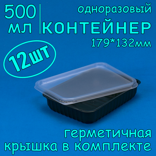 Контейнер одноразовый с крышкой 179х132 500 мл 12 шт