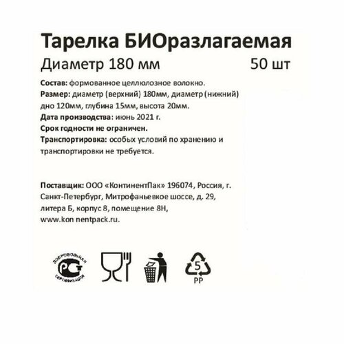 Тарелка одноразовая бумажная (d=180мм, белая) 50шт.