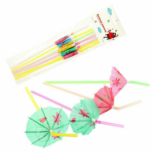 Одноразовая посуда для праздника NoName Набор трубочек для коктейля Зонтик, в асс, 8 шт/уп KL29632 2 упаковки