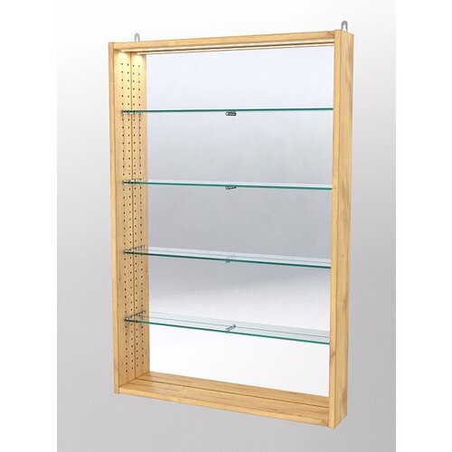 Витрина настенная с регулировочными полками №2-4ГУ-РЕГ с зеркалом и с подсветкой, Дуб Золотистый 60 x 10 x 90 см