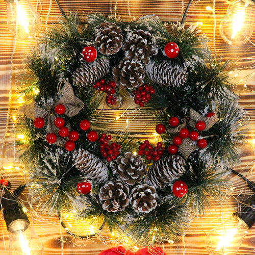Венок "Зимняя пташка"/ Новогодний венок на дверь