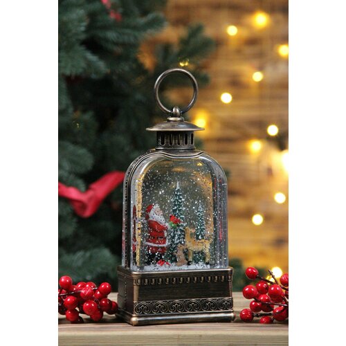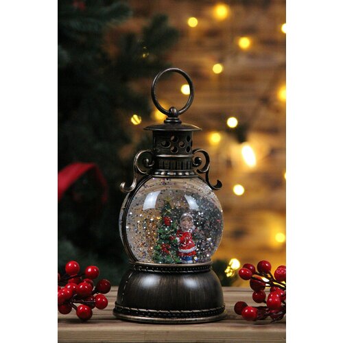 Новогодний декоративный фонарик с подсветкой и снегом | LED-Светильник в ретро-стиле "Снеговичок", 13 см 13х5,5х5,5 см Под бронзу