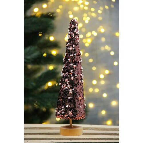 Новогодняя фигура Елочка конус на деревянной подставке 28см, розовая