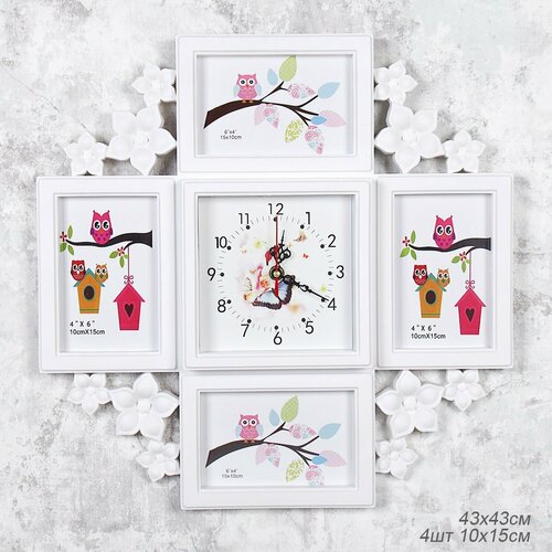 Фоторамка коллаж с часами "Весна" на 4 фото