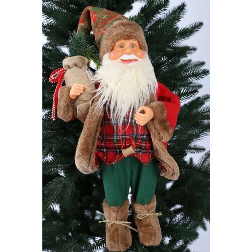 Дед Мороз "С подарками и в ремешке" 50 см, бело-золотой