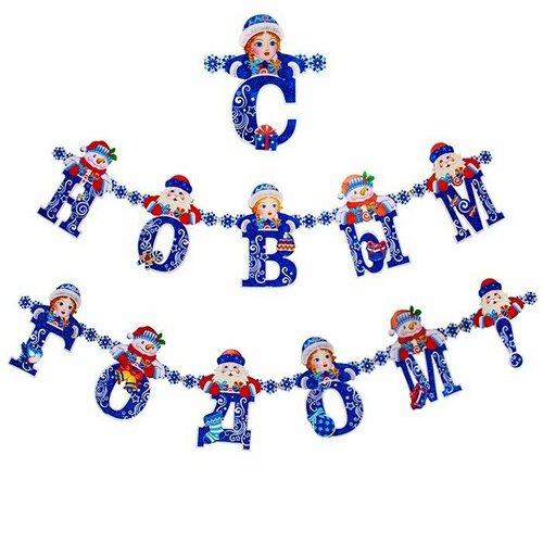 Гирлянда-растяжка КНР С Новым Годом! синяя (141-2587S)