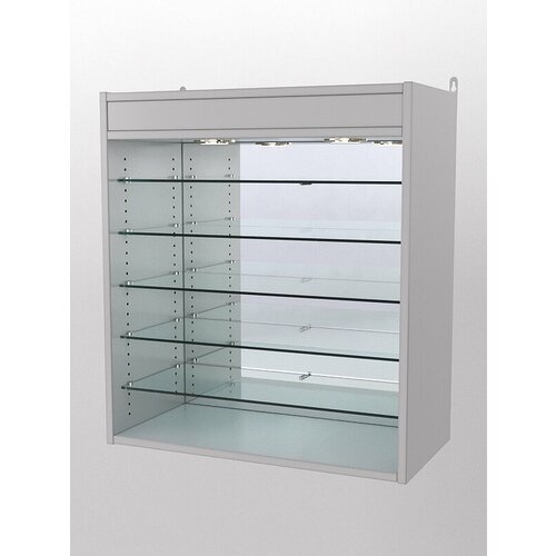 Витрина настенная с регулировочными полками №1-8ГГ-РЕГ с зеркалом и с подсветкой, Серый 60 x 30 x 67 см