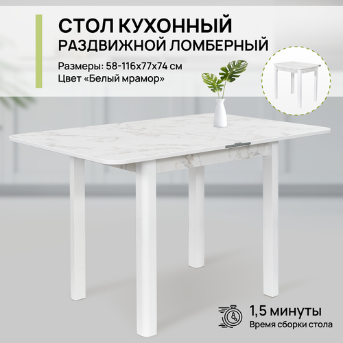 Стол обеденный раскладной ломберный для кухни и гостиной, 58-116х77х74
