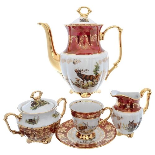 Кофейный сервиз Repast Охота красная Мария-тереза 15 предметов на 6 персон