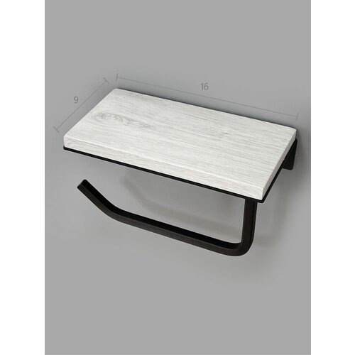Полка №1 Держатель туалетной бумаги с полочкой "Дуб беленый" на черном