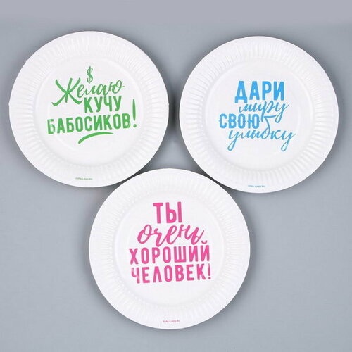 Тарелка бумажная "Хвалебная", 18 см, в наборе 6 шт.
