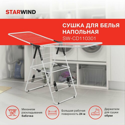 Главная Товары для дома Уход за одеждой и обувью Товары для ухода за одеждой и бельем Сушка для белья Starwind SW-CD110301 белый