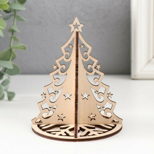 Фигурка на подставке "Елка 3D" натуральная 8х10 см (набор 3 детали)