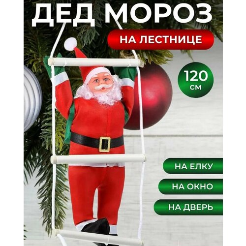 Уникальный Музыкальный Дед Мороз на лестнице , Новогоднее украшение на окно, двери, елку, Новый 2025 год,120 см