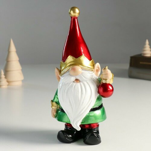 Сувенир полистоун Дед Мороз в колпаке, с новогодним шариком 8х9,5х21 см