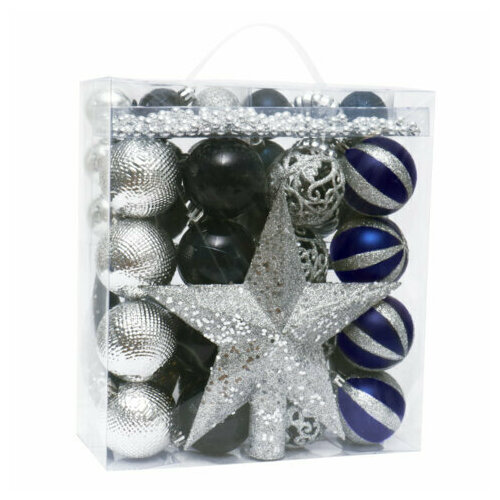 Шары новогодние ёлочные "Navy" набор 42 предмета, пластик, темно-синий/серебро золотая сказка 591990