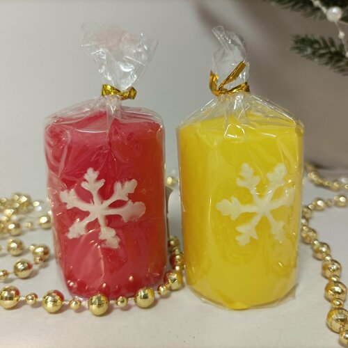 Свечи с новогодней снежинкой 6см красная и жёлтая 2 шт
