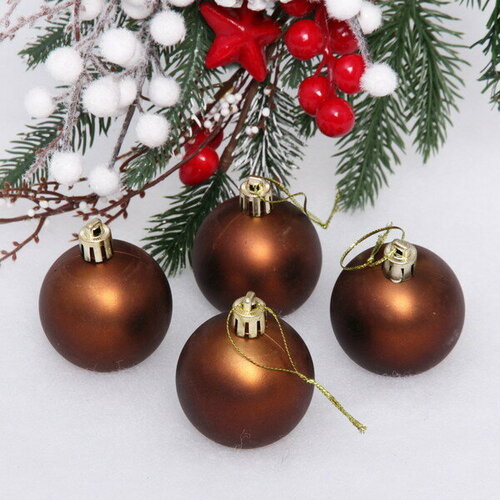 Новогодние шары 5 см (набор 4 шт) "Матовый", шоколад