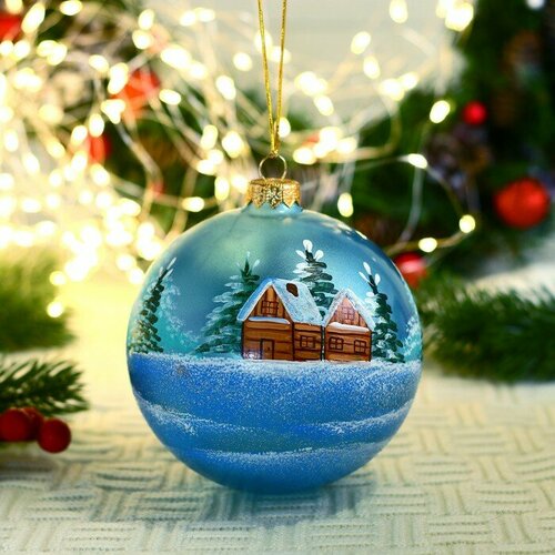 Ёлочный шар d-12 см "Зимняя деревушка" ручная роспись