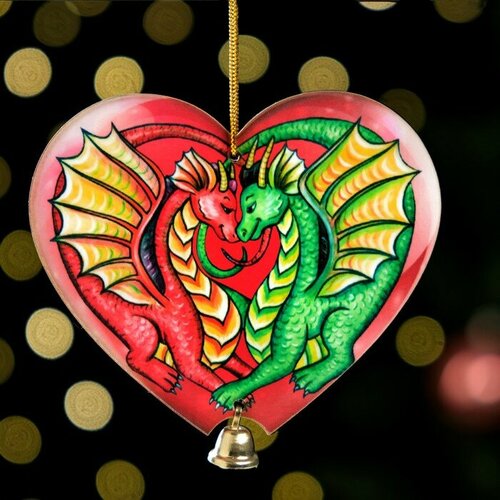 Ёлочная игрушка "Влюбленные драконы", ламинация, 88 х 74мм
