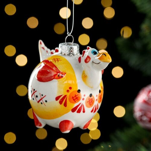 Ёлочная игрушка "Шар Дракон Огонь.2024", фарфор