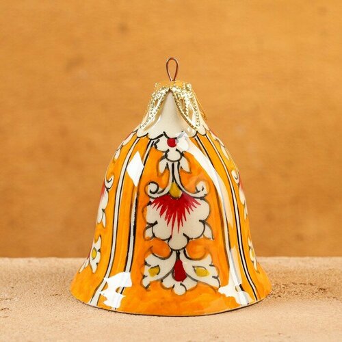 Игрушка ёлочная Риштанская керамика "Колокольчик", 7 см, оранжевая