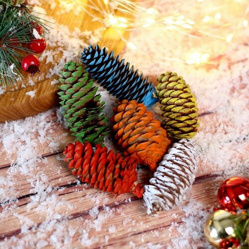 Набор еловых шишек для декора «Цветные» 6 шт.