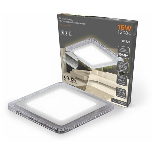 Встраиваемый светильник Gauss Backlight Bubbles BL324 12+4W, LED 3000K, 1200лм,192x192мм