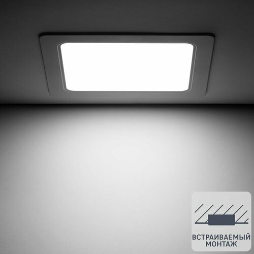 Светильник точечный светодиодный Gauss Downlight квадрат под отверстие 160 мм, 7 м², нейтральный белый свет, цвет белый