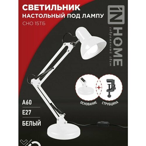 Светильник настольный под лампу на основании + струбцина СНО 15Б 60Вт E27 230В белый IN HOME
