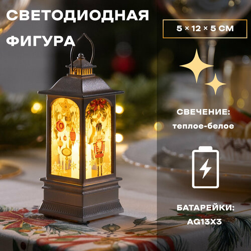 Фонарь новогодний Luazon Lighting Фонарь с 1 свечой Олени 4843967, 13 см