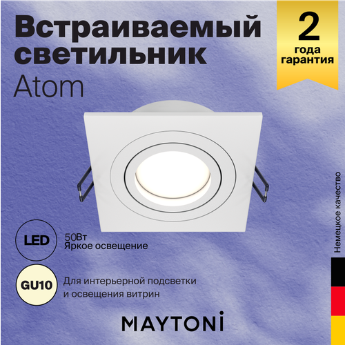 Спот MAYTONI Atom DL024-2-01W, GU10, 50 Вт, нейтральный белый, цвет арматуры: белый, цвет плафона: белый