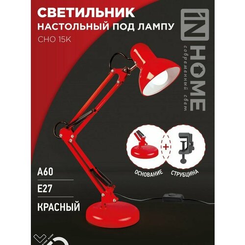 Светильник настольный под лампу на основании + струбцина СНО 15К 60Вт E27 230В красный IN HOME