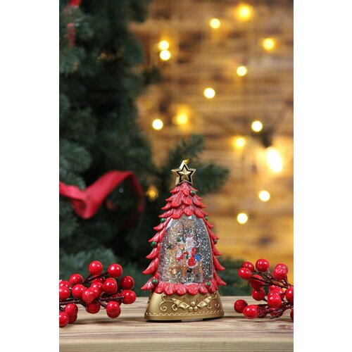 Светильник новогодний фонарь Елочка и Дед мороз 23.5см, светящийся, музыкальный, USB