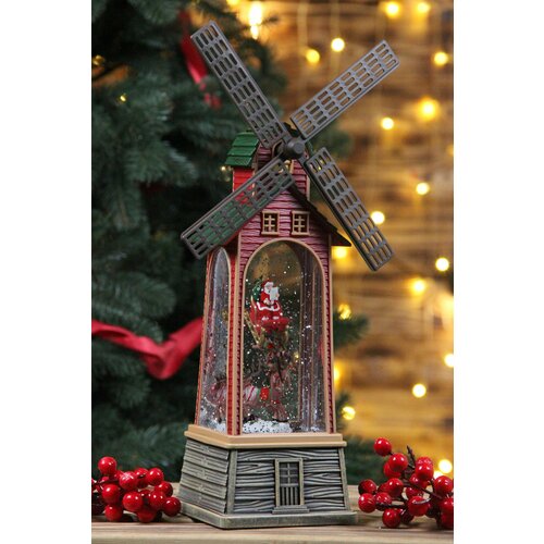 Светильник новогодний фонарь Мельница 29см, светящийся, музыкальный, USB