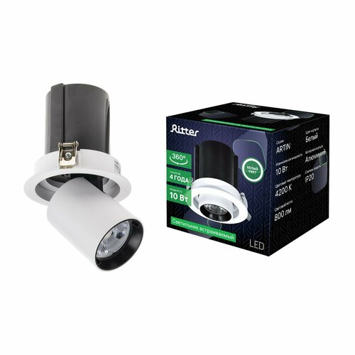 Светильник встр-й, ARTIN, выдвиж поворот цилиндр 90х92мм LED 10Вт 800Лм 4200К Al белый 59992