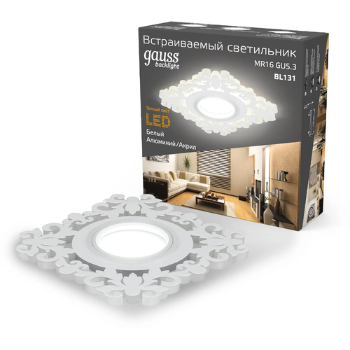 Светильник Gauss Backlight BL131 Квадрат/узор. Белый, Gu5.3, 3W, LED 3000K 1/40