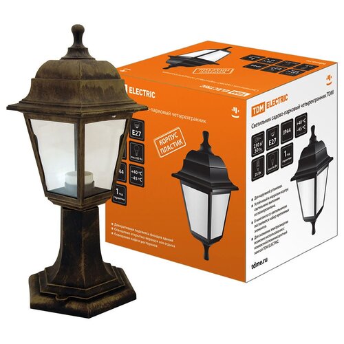 Светильник садовый Tdm Electric НТУ 04-60-001, стойка, IP44, четырехгранник, пластик, бронза