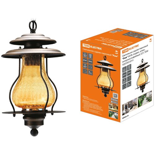 Светильник садово-парковый "Рим" 60 Вт, подвес, алюминий, янтарное, кофейный, Е27, TDM SQ0330-0211 (1 шт.)