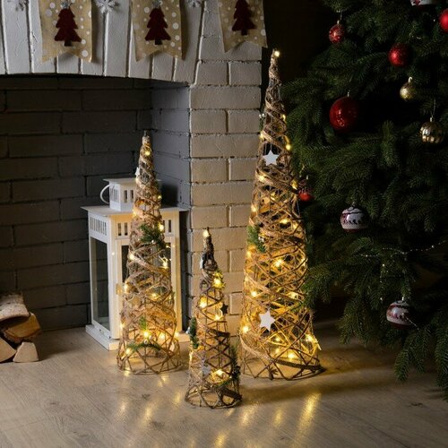 Светодиодная фигура «Конусы серые» 40, 60, 80 см, текстиль, металл, батарейки ААх2 (не в комплекте), свечение тёплое белое
