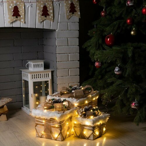Светодиодная фигура «Бежевые подарки» 15, 20, 25 см, текстиль, металл, батарейки ААх2 (не в комплекте), свечение тёплое белое