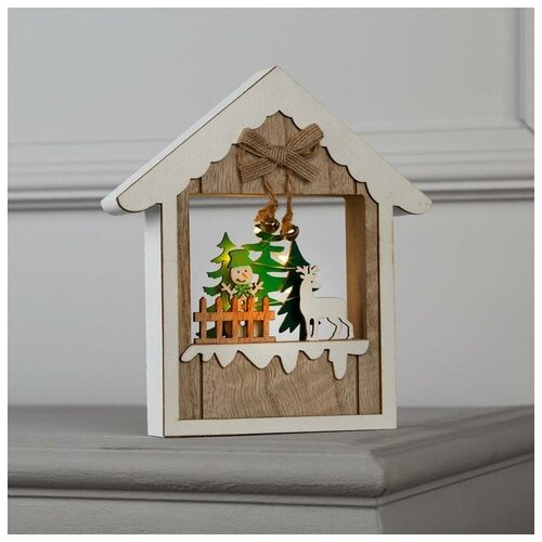 Luazon Lighting Светодиодная фигура «Замок с оленями» 15 × 15 × 5 см, дерево, батарейки АААх2 (не в комплекте), свечение тёплое белое