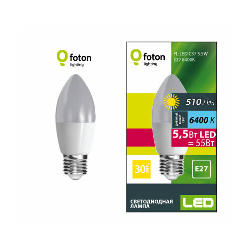 Светодиодная лампа FOTON LIGHTING FL-LED C37 5.5W E27 6400К 220V 510Лм 37*100мм