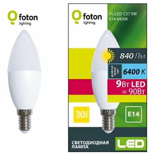 Светодиодная лампа FOTON LIGHTING FL-LED C37 9W E14 6400К 220V 840Лм 37*100мм