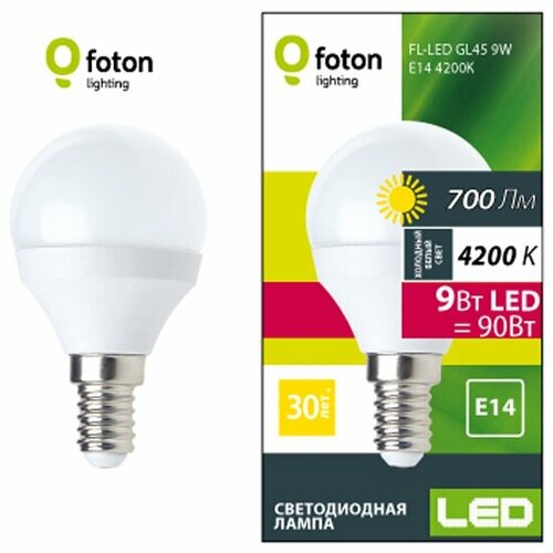 Светодиодная лампа FOTON LIGHTING FL-LED GL45 9W E14 4200К 220V 840Лм 45*80мм