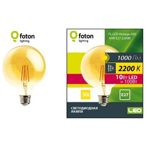 Светодиодная лампа FOTON LIGHTING FL-LED Vintage G95 10W E27 2200К 220V 1000Лм 95*140мм