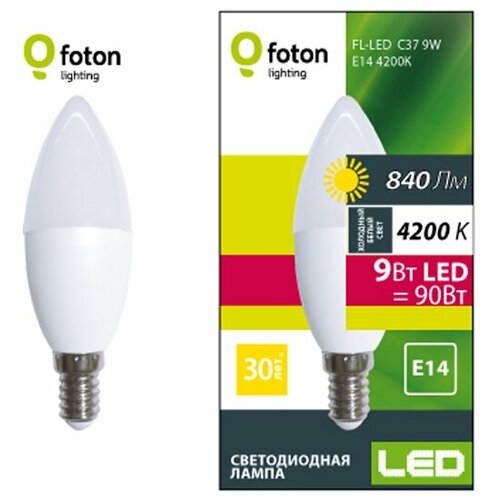 Светодиодная лампа FOTON LIGHTING FL-LED C37 9W E14 4200К 220V 840Лм 37*100мм