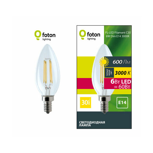 Светодиодная лампа FOTON LIGHTING FL-LED Filament C35 6W Dim E14 3000К 220V 600Лм 35*98мм