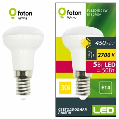 Светодиодная лампа FOTON LIGHTING FL-LED R39 5W E14 2700К 450Лм 39*68мм 220В - 240В
