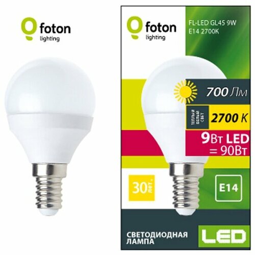 Светодиодная лампа FOTON LIGHTING FL-LED GL45 9W E14 2700К 220V 700Лм 45*80мм